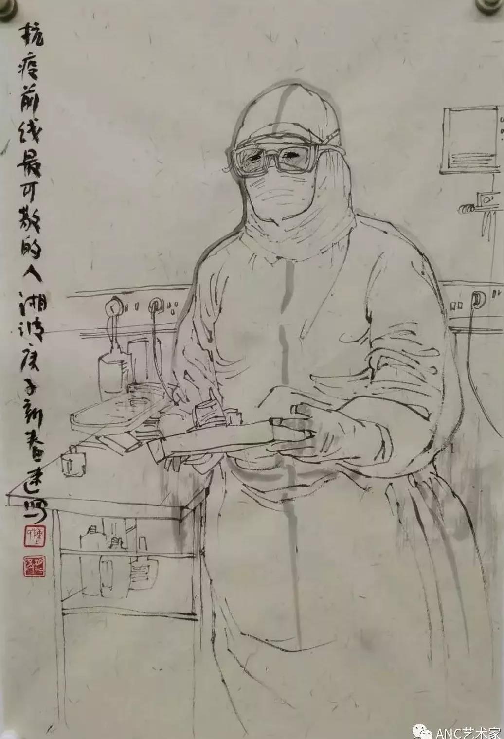 “战疫中的医务工作者特别了不起,太令人感动了。”有感而发的陈湘波代表用速写的形式,单用墨色线条勾描出不藻修饰形象,简单直接地表现不顾个人安危,战斗在抗疫一线的医生和护士,抒发对他们的崇敬之情,以此提振市民信心,鼓励大家众志成城奋战疫情。