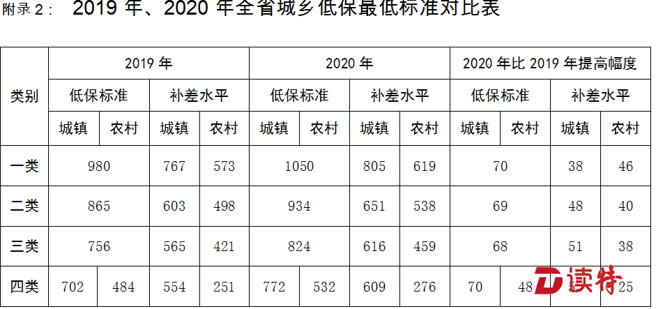 根据《广东省社会救助条例》《广东省人民政府办公厅关于建立全省城乡低保最低标准制度的通知》要求和2020年省政府“十件民生实事”部署,日前,经广东省人民政府同意,广东省民政厅印发了《2020年全省城乡低保最低标准》,分四类地区制订广东城乡低保最低标准。与2019年相比,2020年全省城乡低保最低标准稳步提升并保持在全国前列。