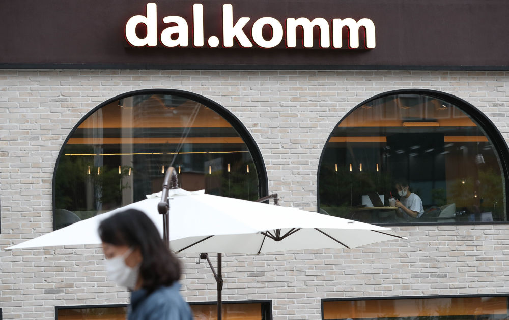 7月9日,戴口罩的客人在韩国首尔清溪川附近一家咖啡馆内学习。(新华社记者王婧嫱摄)