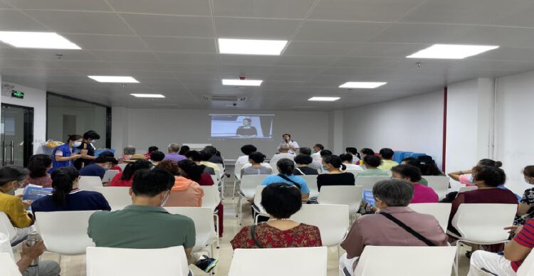 本次活动由福民社区社康医院李医生主讲。活动主要针对老年人常见的口腔问题进行讲解,详细分析了老年人牙齿松动、牙龈发炎以及口腔溃疡等牙病的病因及治疗方法。李医生讲解风趣幽默通俗易懂,使社区居民对口腔保健及口腔疾病预防、治疗有了更直观更深入的了解。