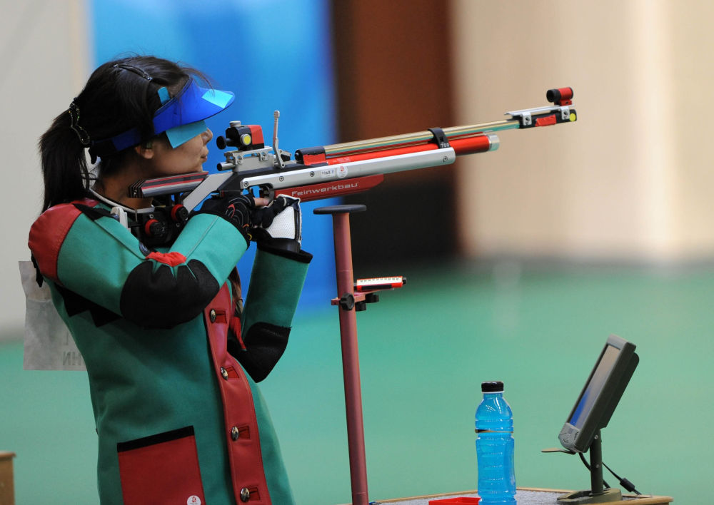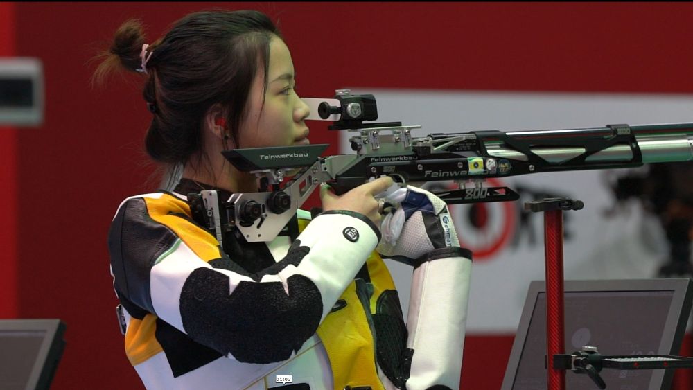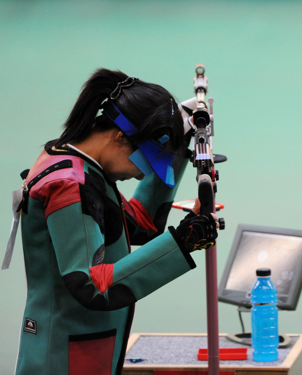 (赵颖慧在雅典奥运会射击女子10米气步枪预赛中)