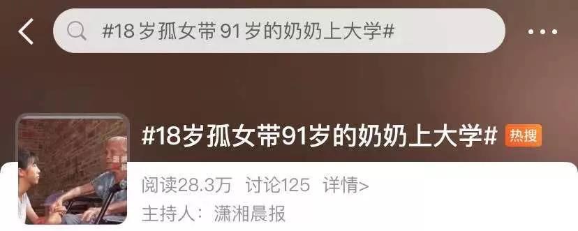 8月23日,话题“18岁孤女带91岁的奶奶上大学”冲上热搜。