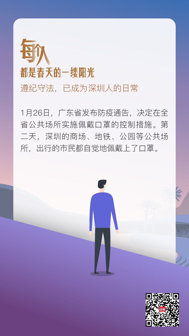 1月26日,广东省发布防疫通告,决定在全省公共场所实施佩戴口罩的控制措施。第二天,深圳的商场、地铁、公园等公共场所,出行的市民都自觉地佩戴上了口罩。