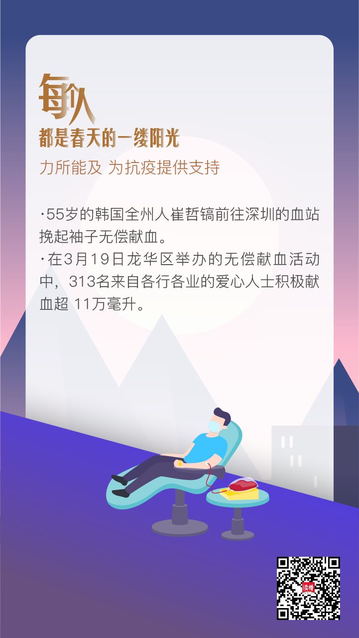 像崔哲镐一样以献血贡献抗疫力量的人不在少数。在3月19日龙华区举办的无偿献血活动中,313 名来自各行各业的爱心人士积极献血超11万毫升。他们用力所能及的实际行动,为抗疫提供支持。