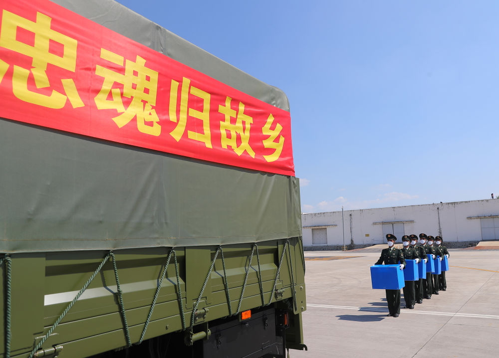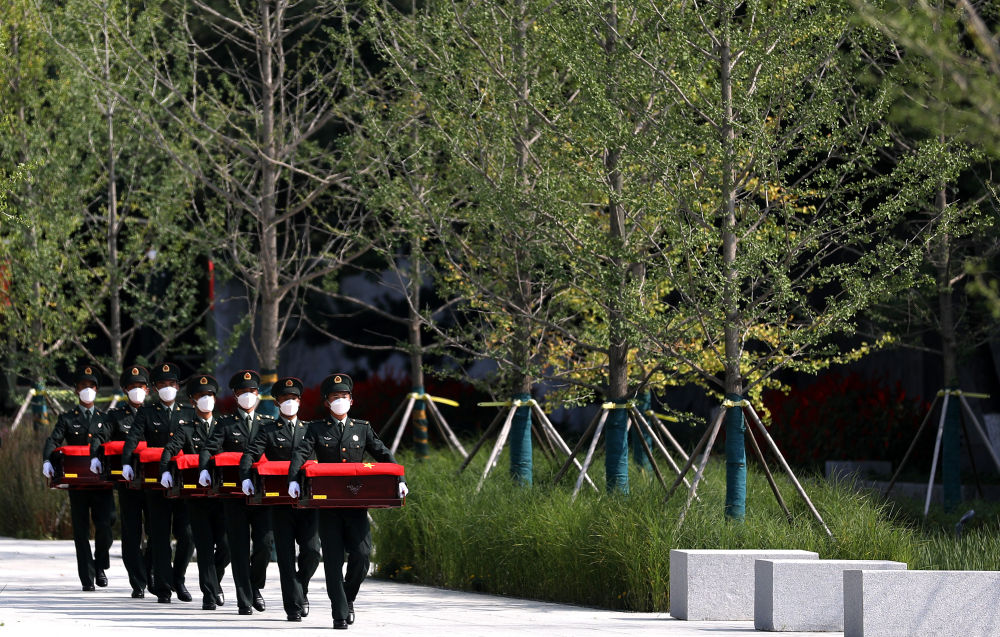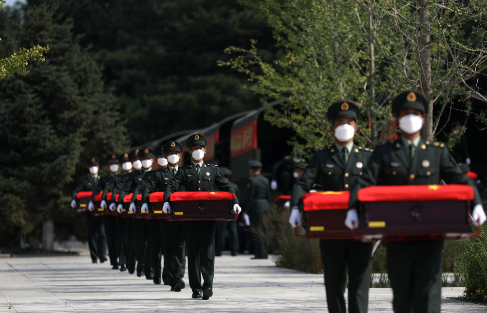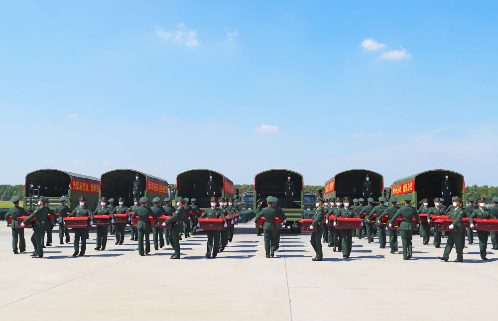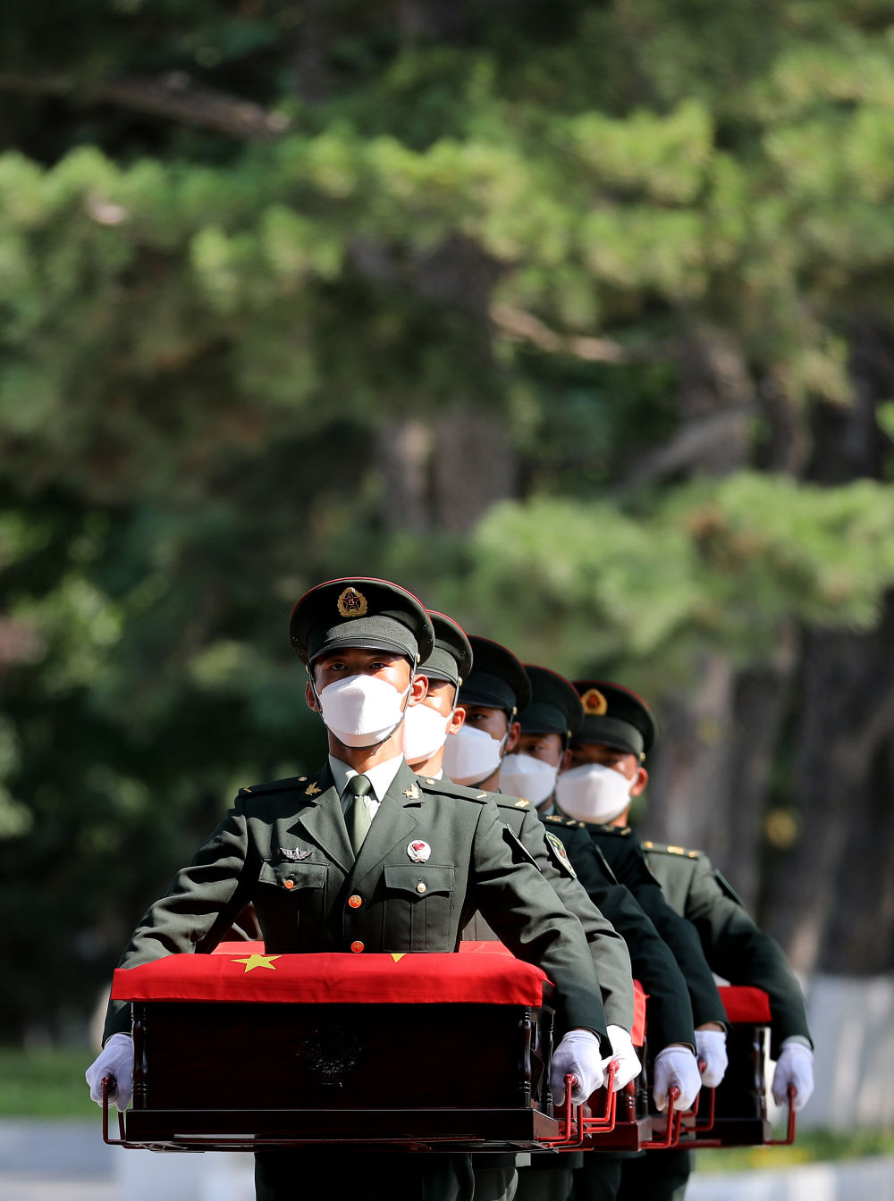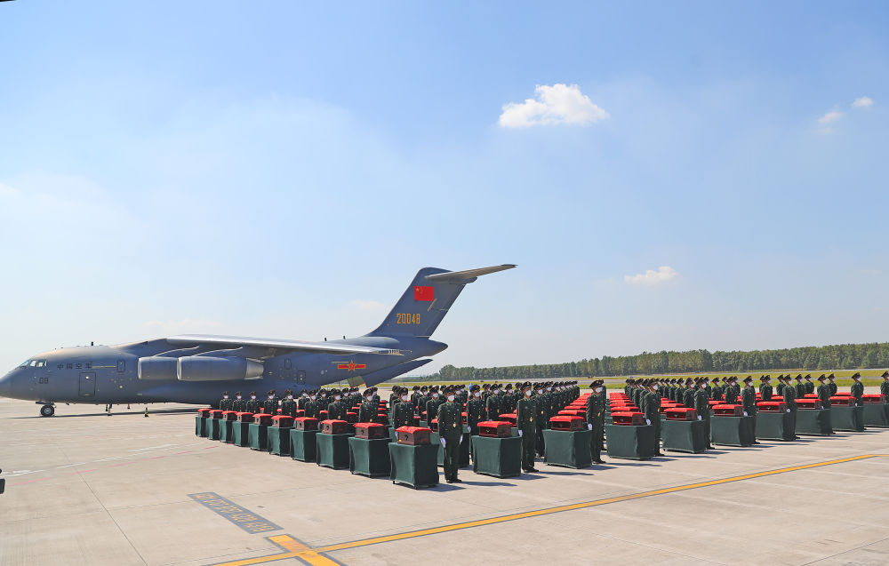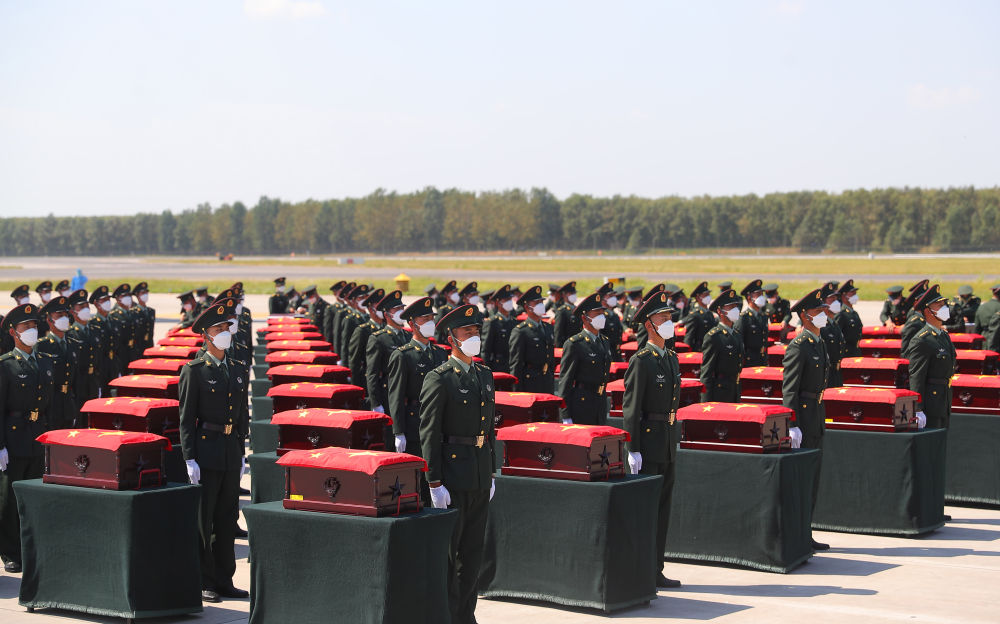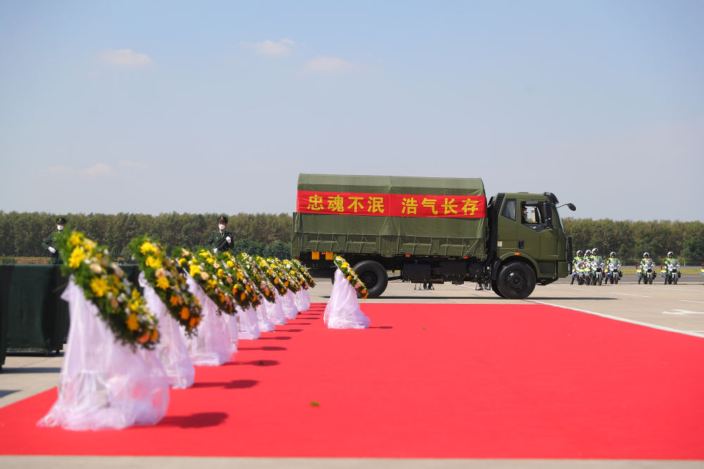 ↑9月2日,志愿军烈士的遗骸抵达沈阳抗美援朝烈士陵园。