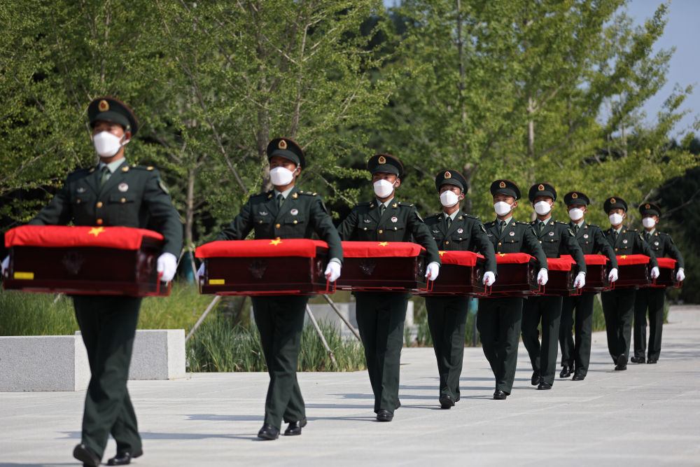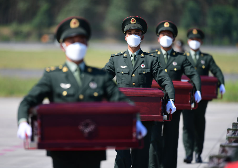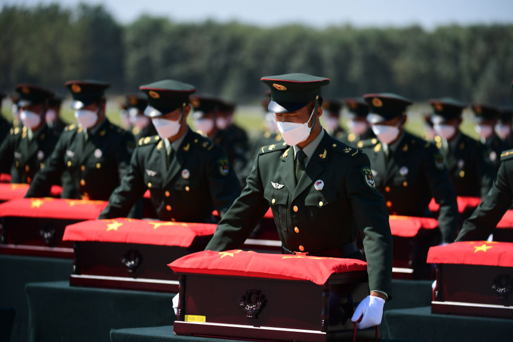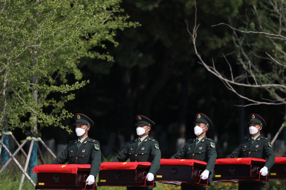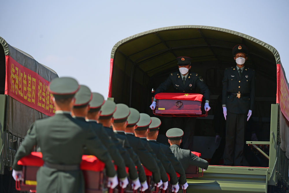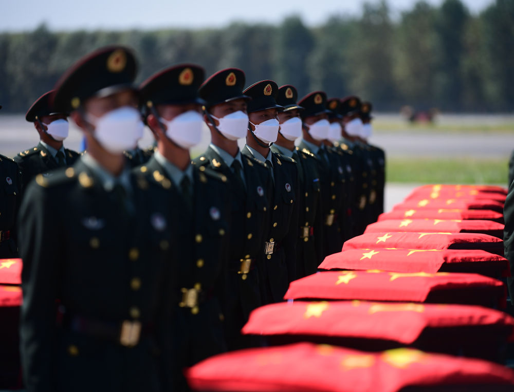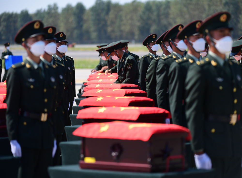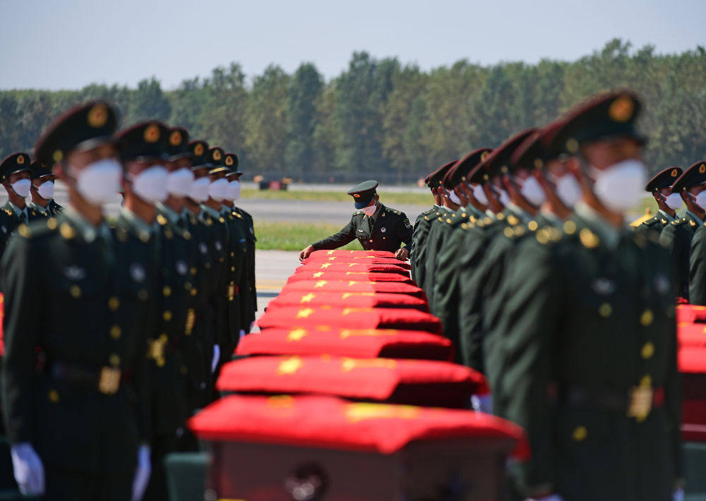 ↑9月2日,志愿军烈士的遗骸抵达沈阳抗美援朝烈士陵园。