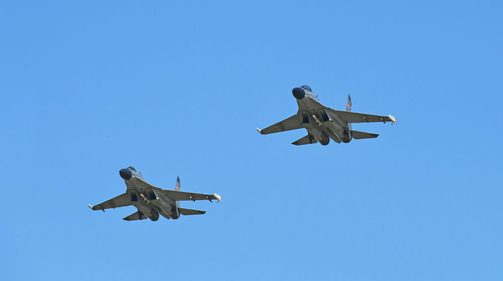 ↑9月2日,进入中国领空后,空军两架战斗机为护送烈士遗骸的专机护航,向志愿军烈士致以崇高敬意。