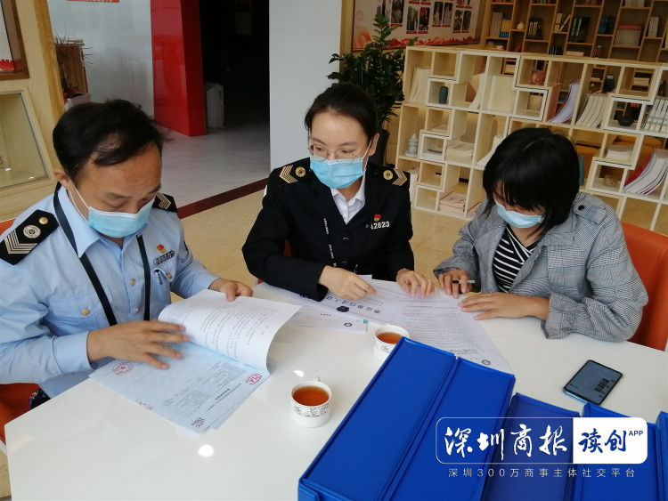▲执法员对光明区实验学校学生饮用水检测结果进行检查。