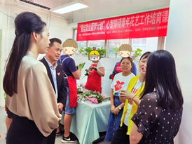 深圳市仁和社会工作服务中心、深圳市罗湖区仁爱康复服务中心主任唐荧向参访人员介绍了机构情况、设施配置、服务项目等情况。随后,参访人员进一步了解“星娃就业圆梦计划”心智障碍青年花艺培育课程。学员们在花艺老师的耐心教学和协助下,逐步掌握花艺要领,完成花艺订单,并且获得劳务津贴,创造属于自己的价值。宝能和慈善会代表为参与工作的青年发放劳务津贴与节日慰问品,青年学员开心地为参访人员送上自己制作的花束表示感谢。