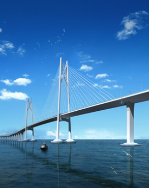 港珠澳大桥位于珠江口伶仃洋海域,是连接香港特别行政区、广东省珠海市和澳门特别行政区的大型跨海通道,大桥全长55公里。
