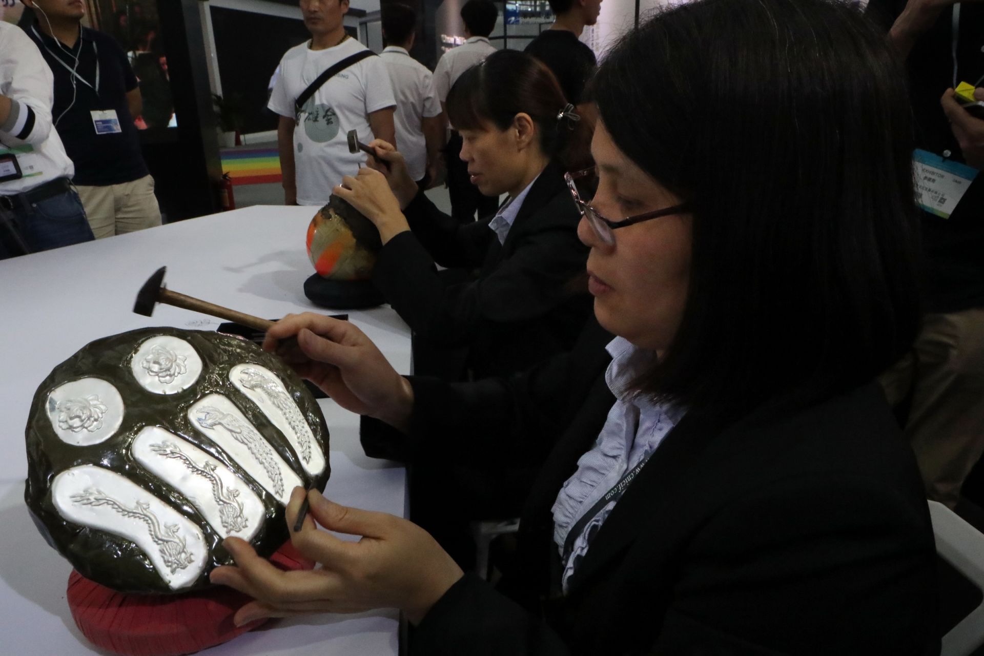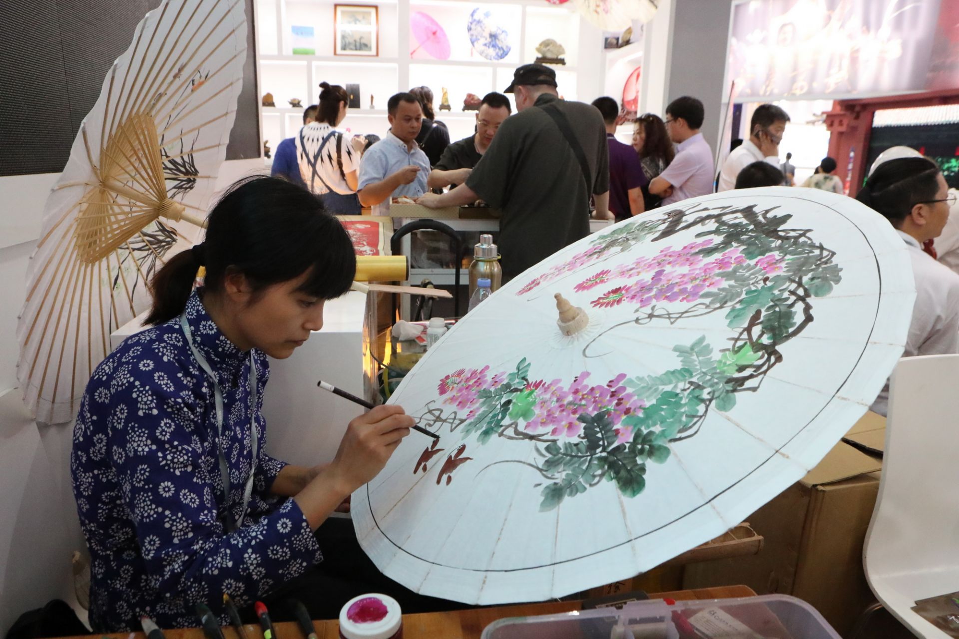 5月12日,第十三届中国(深圳)国际文化产业博览交易会在深圳会展中心进行。图为江西省婺源县甲路工艺伞有限公司,醉美婺源。