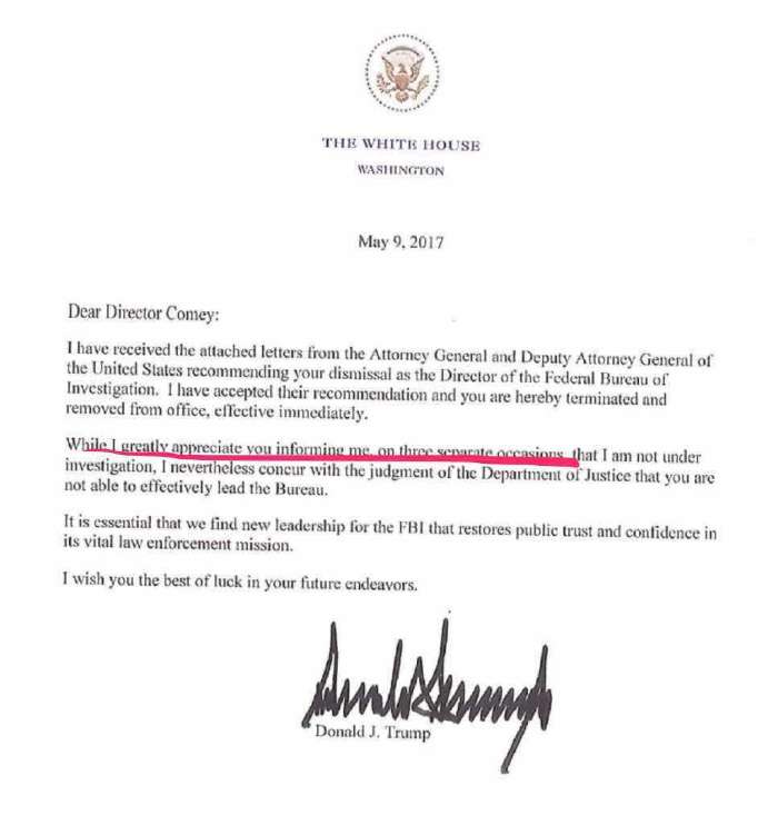 据报道,在被踢走之前,科米领导下的联邦调查局一直在调查特朗普的竞选团队成员是否与俄罗斯官员勾结以左右2016年总统选举,科米多次在不同场合证实了这一说法。而在10号公布的特朗普给科米的解雇信中特朗普曾经提及:“感谢科米前后三次跟自己保证,特朗普本身不在调查范围内。”11号的“早安美国”上,桑德斯再次确认听特朗普亲口说过:科米直接向特朗普传达了“特朗普不在调查范围内”等信息,但截至目前,白宫并没能出示相关证据。
