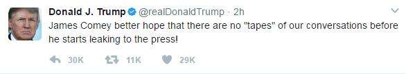美国当地时间12号早上,美国总统特朗普发推文,警告9号被解职的联邦调查局长科米不要向媒体爆料,让人不禁怀疑“事有蹊跷”。