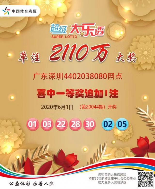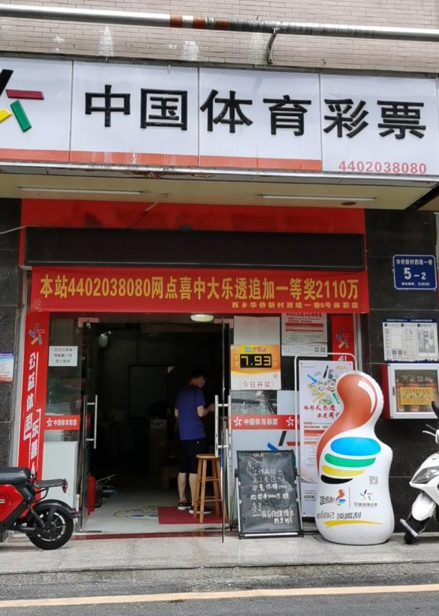 深圳体彩近日喜事连连大奖频开。6 月 1 日晚中国体育彩票超级大乐透第 20044 期开奖,深圳购彩者喜中一等奖追加 1 注,单注获得 2110 万元大奖。该奖来自一张" 9+2 复式追加投注"的彩票,出自位于宝安区西乡华侨新村西堤一巷 5 号 4402038080 体彩店。业主梁学良 6 月 2 日简单布置了网点,拍了照发朋友圈:"社区住户纷纷转发中奖信息,要沾一下喜气。"