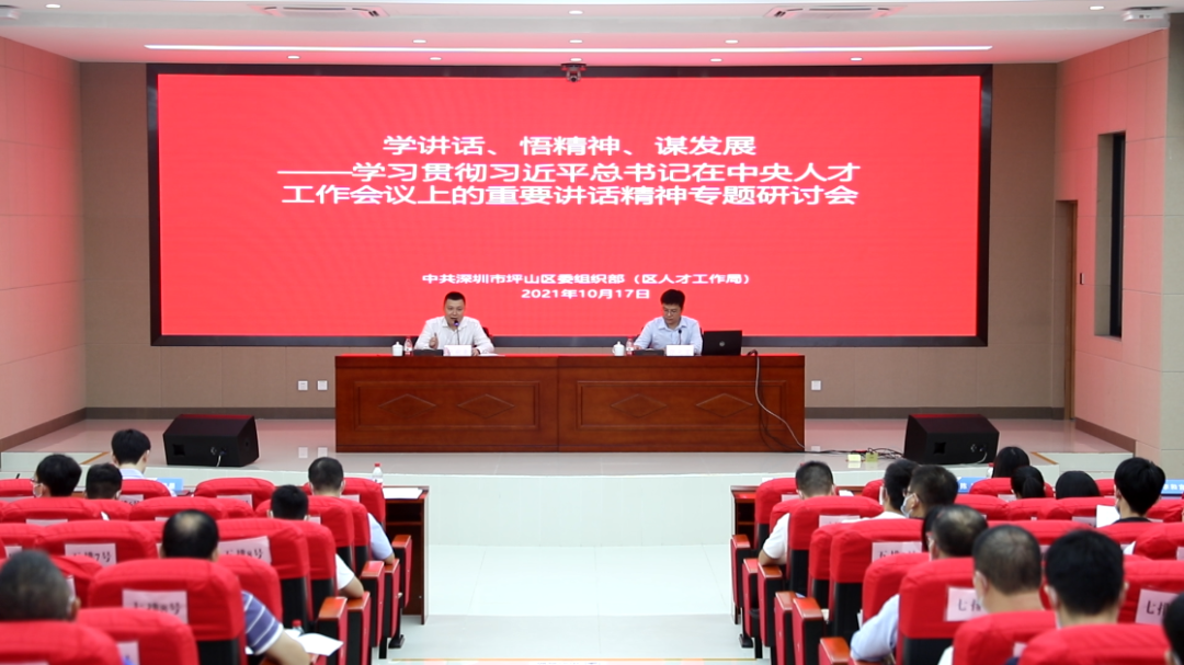 为深入学习习近平总书记在9月27日-28日中央人才工作会议中的重要讲话,切实领悟关于在粤港澳大湾区建设高水平人才高地的会议精神,谋划坪山贯彻落实举措,促进人才工作高质量发展,近日,“学讲话、悟精神、谋发展”——学习贯彻习近平总书记在中央人才工作会议上的重要讲话精神专题研讨会在坪山区委党校举办。会议邀请到市委组织部(市人才工作局)人才一处副处长张元星授课,并组织区内近70名各领域高层次人才进行分组交流研讨。