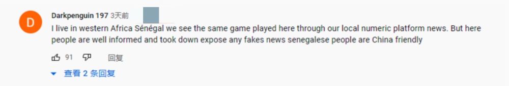 塞内加尔网友Darkpenguin:“在塞内加尔,类似的把戏也在当地媒体上演,但这里的人民绝不会相信这些假新闻。塞内加尔人民对中国很友好。”