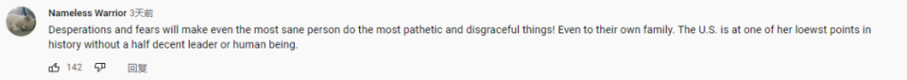 网友Nameless Warrior:“绝望和恐惧会让最明智的人做出最可悲和可鄙的事情。美国正处于历史上的最低谷。”