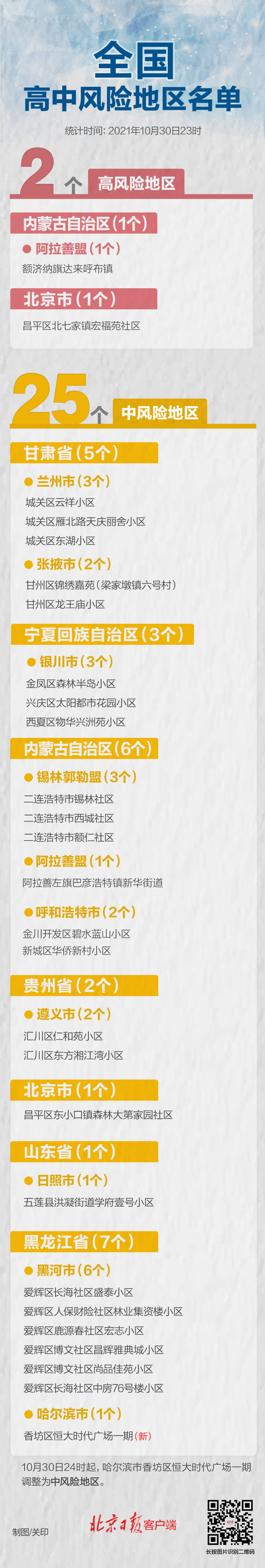 哈尔滨1地升级,全国高中风险区增至2+25个