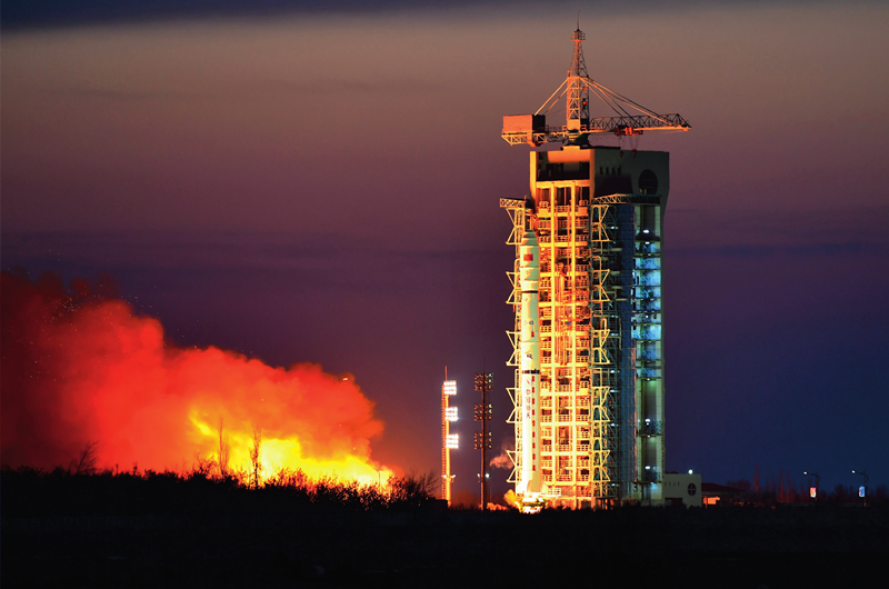 2021 年 12 月 10 日 8 时 11 分,我国在酒泉卫星发射中心用长征四号乙运载火箭,成功将实践六号 05 组卫星发射升空。这次任务是长征系列运载火箭的第 400 次飞行 汪江波摄 / 本刊