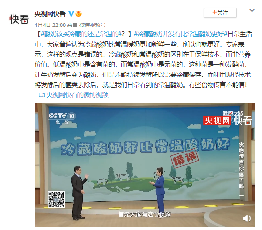 (原标题《冷藏酸奶比常温暖奶新鲜?你也这么认为吗? 》)