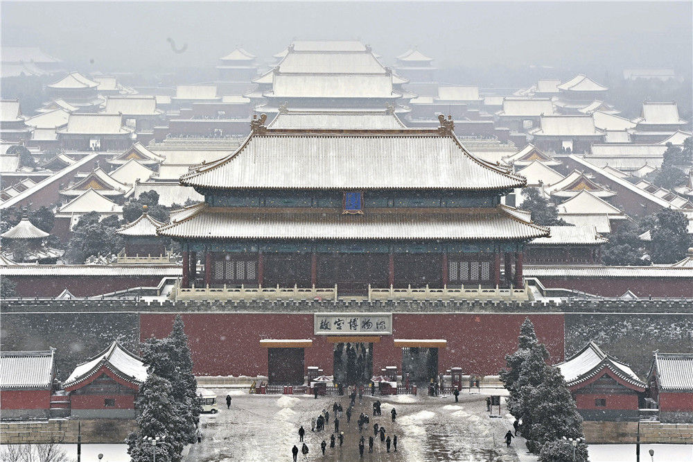 这是2022年1月22日从北京景山公园拍摄的故宫雪景。新华社记者 李鑫 摄