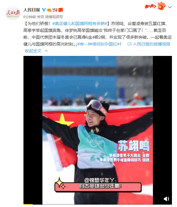 截至目前,中国代表团本届冬奥会已赢得6金4银2铜,并实现了很多新突破。一起看奥运健儿与国旗同框的高光时刻!