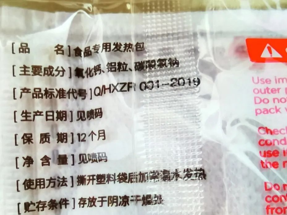02、加热包不是食物,绝不能食用,要看好自家小孩,千万不要让孩子撕破或误食加热包原料。
