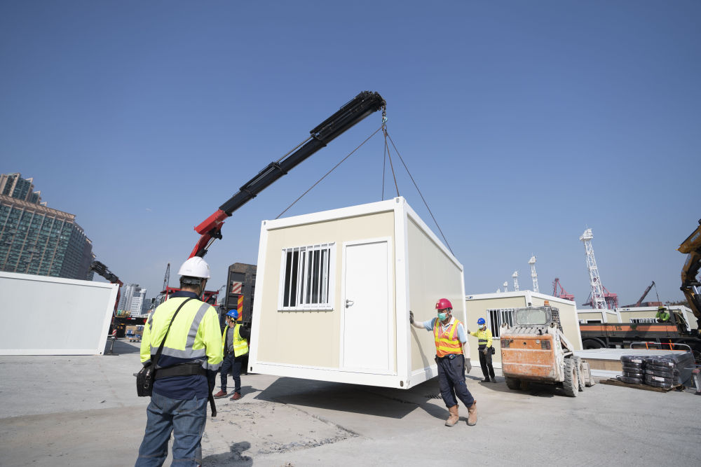 设计建造方中国建筑国际集团介绍,青衣方舱医院建设项目总进场人数超过1800人,其中内地员工约300人,香港工人超过1500人,自2月22日开工后24小时不间断施工。