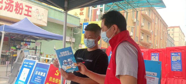 为帮助人民群众强化“疫情防控 人人有责”的意识,3月2日,宝安区松岗街道司法所开展了一场防疫普法宣传活动,在辖区各大核酸检测点和社区卡口为往来的群众发放“疫情防控法律风险提示”宣传册。