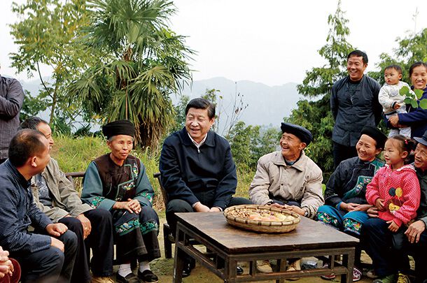 ▲2013年习近平与十八洞村村民座谈,提出“精准扶贫思想”。