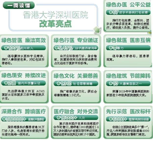 港大深圳医院深化粤港合作,先行先试、积极探索,全面推行绿色医疗改革,打造国际化的现代医院管理模式,已成为公立医院改革标杆和粤港澳大湾区医疗合作的先行者,为深圳乃至全省、全国公立医院综合改革提供了有益参考。