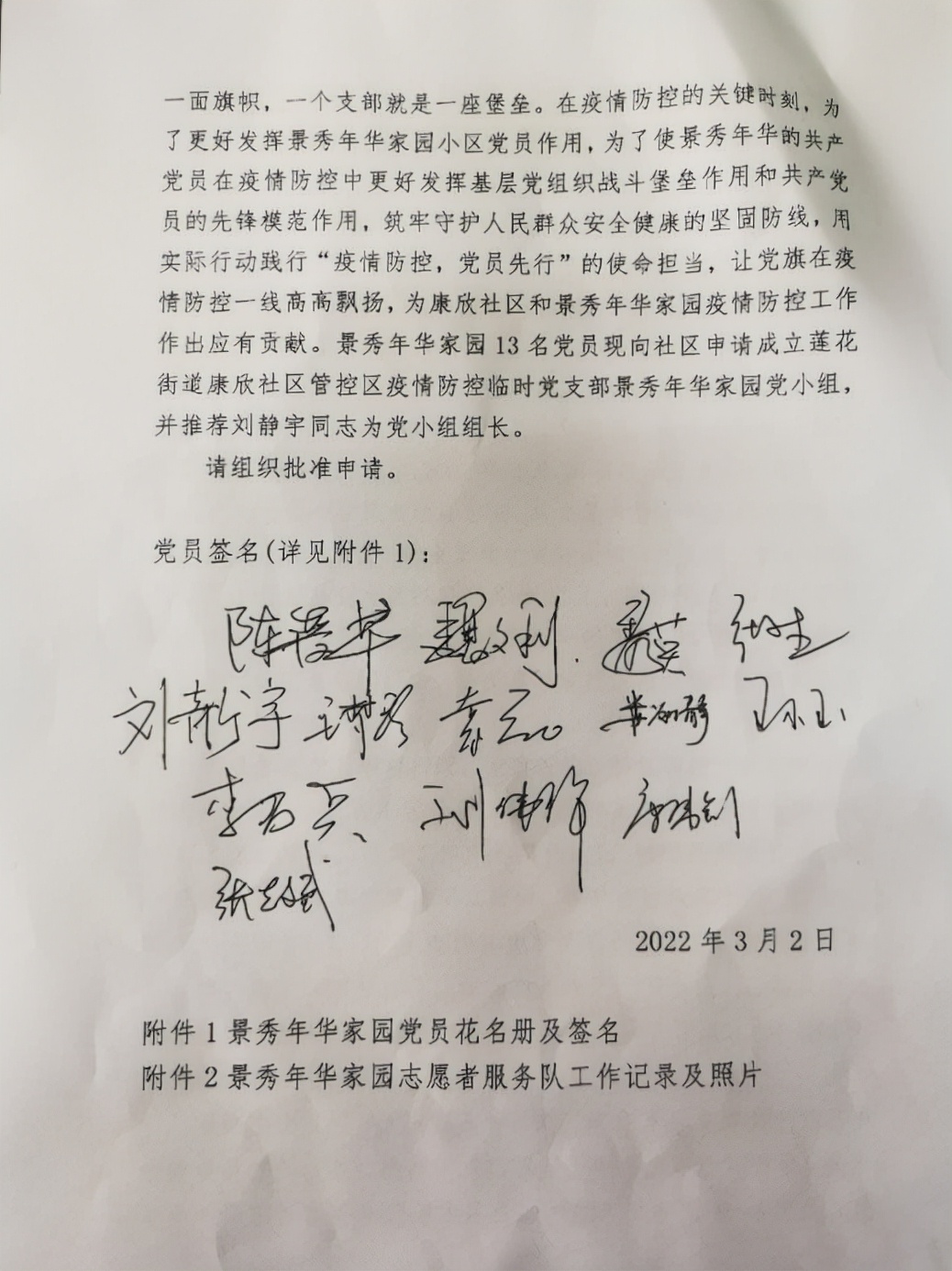 3月2日经莲花街道及康欣社区两级党委批准,莲花街道康欣社区管控区疫情防控临时党支部景秀年华家园党小组正式成立。