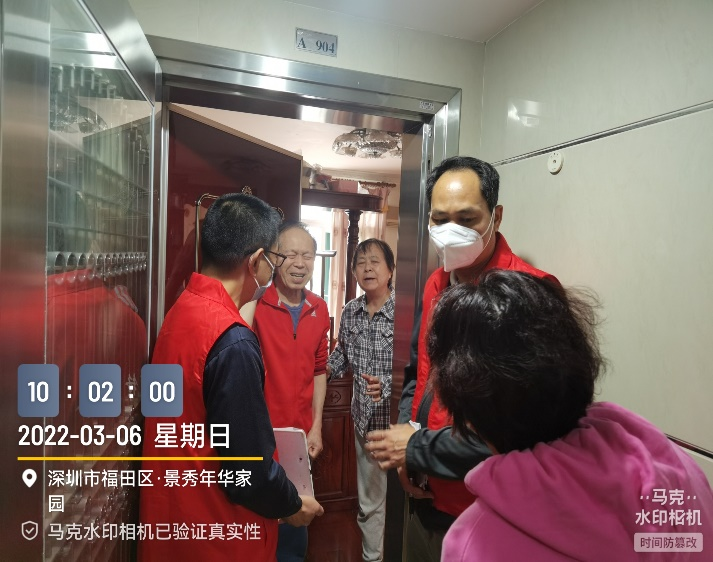 3月6日上午,4名党员志愿者开展景秀年华家园独居老人、需帮助家庭关爱走访活动,共上门走访14户家庭,其中10户独居老人家庭、3户特别关注人员、1户外籍人员。主要了解生活情况、身体状况、检测核酸、目前困难等情况,宣传疫情防控政策、疏导老人心情、帮助解决实际困难,现场对2户家庭发放了“党员志愿者一对一帮助卡”。