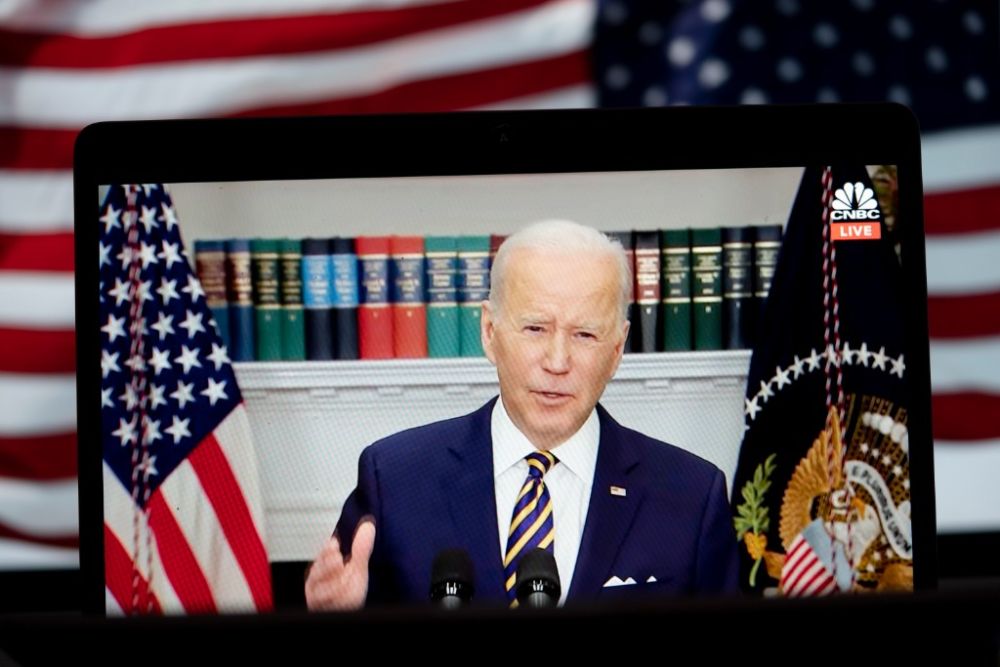 3月8日拍摄的视频画面显示,美国总统拜登在华盛顿白宫发表讲话。新华社记者刘杰摄