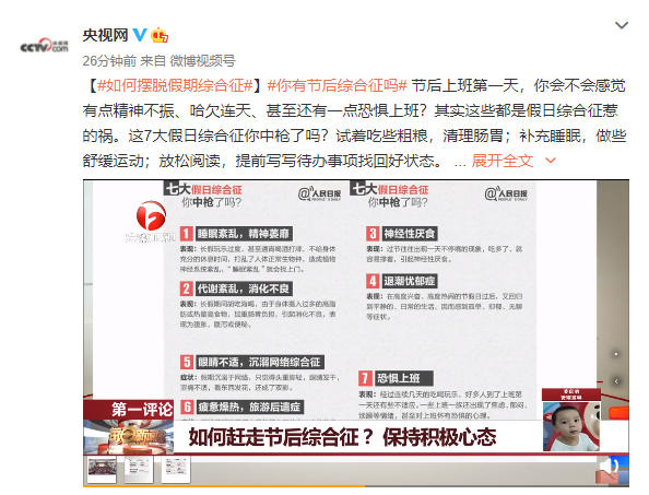 (原标题《节后上班第一天,这7大假日综合征你中招了吗?》)