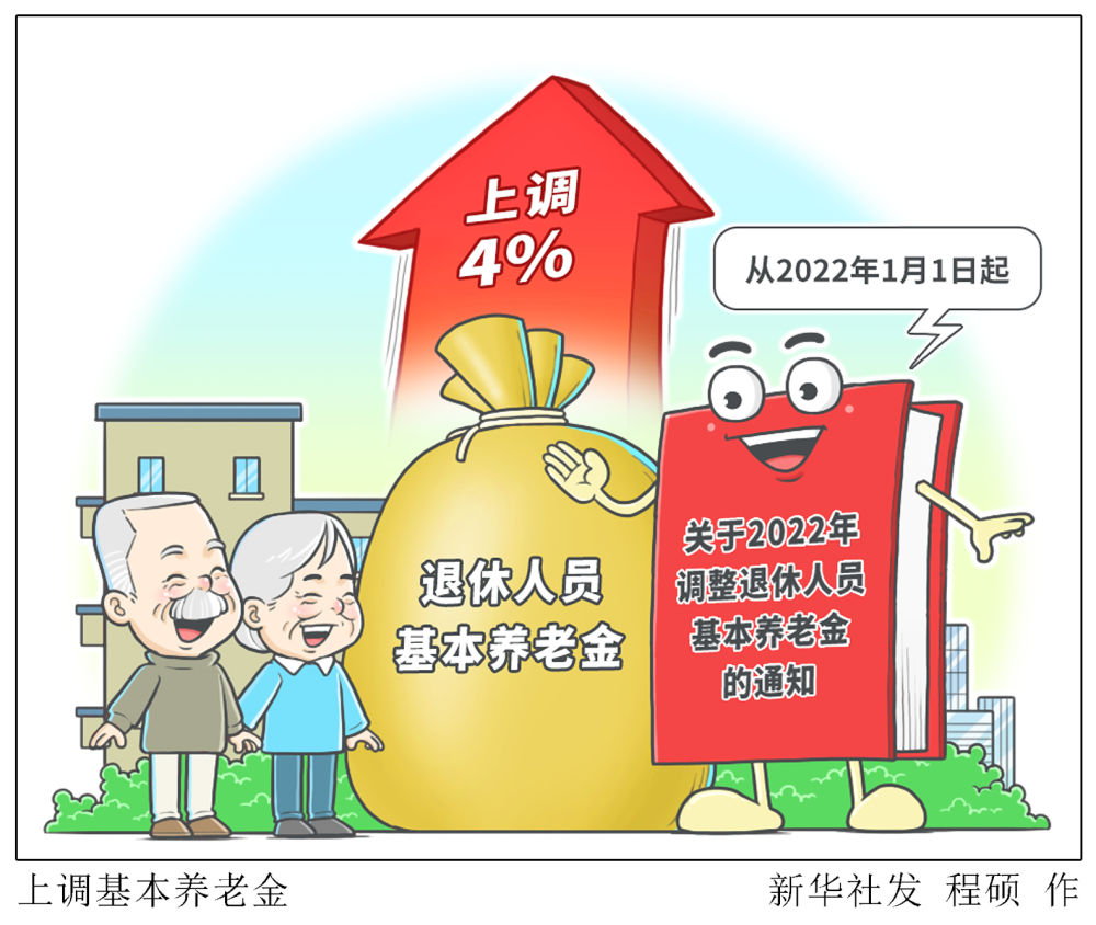 今年5月,人力资源和社会保障部、财政部联合下发通知,明确从2022年1月1日起,为2021年底前已按规定办理退休手续并按月领取基本养老金的退休人员提高基本养老金水平,总体调整水平为2021年退休人员月人均基本养老金的4%。