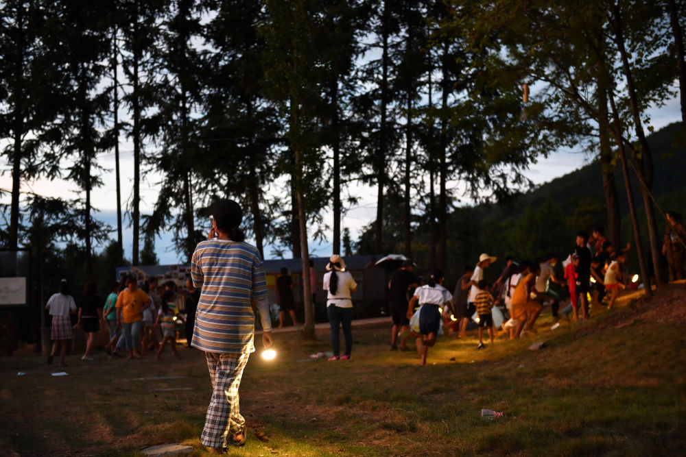 ↑8月20日,孩子们在大元社露天剧场玩耍。