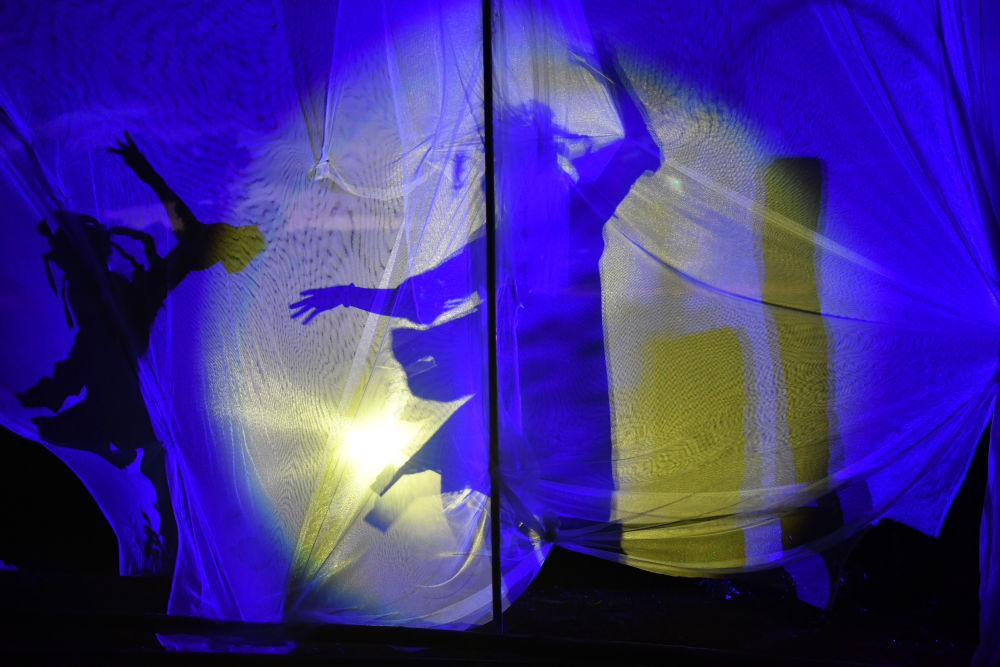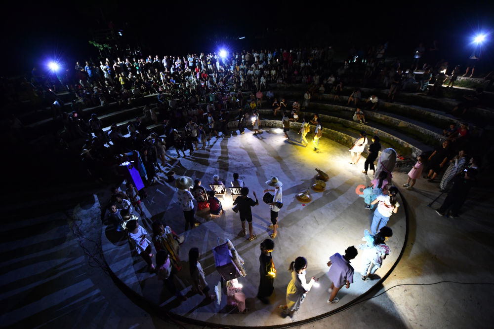 ↑8月20日,孩子们在大元社露天剧场演出戏剧。