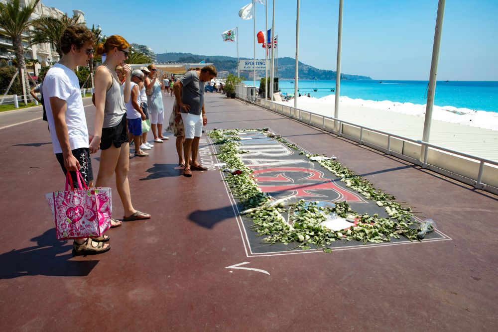 2017年7月14日,在法国尼斯,人们在盎格鲁街一处恐袭纪念地驻足。新华社发(文森·诺吉耶摄)