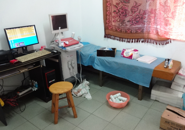 卫监执法人员到现场发现,该诊所大门上方的LED滚动显示屏虽然有些故障,仍不难看出有“无痛人流”、“彩超”等字样。并且在该诊所一房间内发现摆放有1台B型超声机、1箱超声耦合剂以及一堆超声耦合剂空瓶,垃圾桶内也发现有使用耦合剂后擦拭的废纸。同时在房间内的电脑中提取到患者的B超诊断报告。