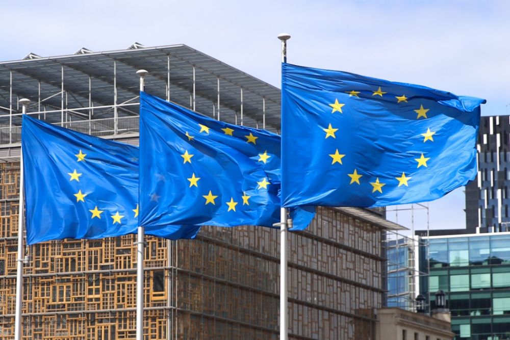 2021年5月21日,欧盟旗帜在比利时布鲁塞尔的欧盟总部外飘扬。新华社记者 郑焕松 摄