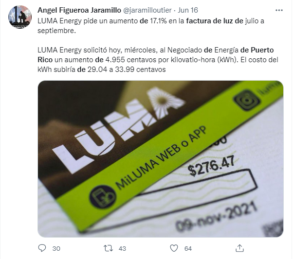 波多黎各民众对供电系统的不满,主要来自频繁的大面积停电,以及不断上涨的电价。