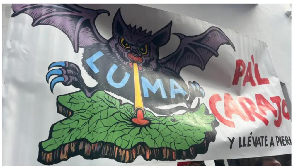 2022年8月,一名网友将鲁玛能源公司画作一只吸血蝙蝠,在波多黎各的上方用吸管吸食波多黎各民众的血汗。(网页截图)