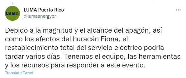 根据当地媒体报道,自从鲁玛能源公司进驻波多黎各,不同地区每天发生着大大小小的停电。2021年4月波多黎各发生过全岛大面积停电。同年8月,电力供应问题导致当地一家大医院停电近20小时。