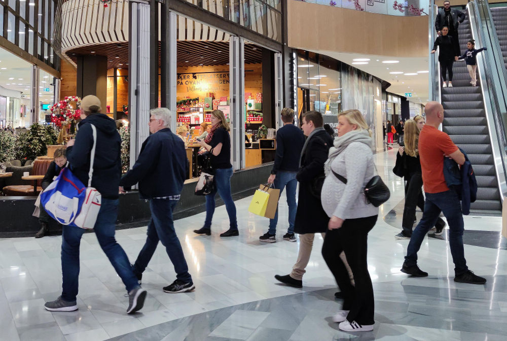 2021年11月5日,人们在瑞典首都斯德哥尔摩一家购物中心购物。新华社发(魏学超 摄)