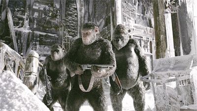 ●制片人迪伦·克拉克:《猩球崛起3:终极之战》一部分是公路电影、一部分是战争故事、一部分是西部片,也是一部史诗冒险片,但这一切的核心都是在探索恺撒的内心世界。我们目睹了恺撒与黑暗恶魔之间的角力,也在其中见到了一道道的光芒,这或许是这群猩猩的故事里,最黑暗却也最具希望的一个篇章。