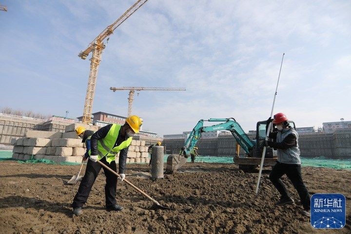 工人在北京市通州区丁各庄公租房项目工地施工(2020年2月10日摄)。新华社记者 李嘉瑞 摄