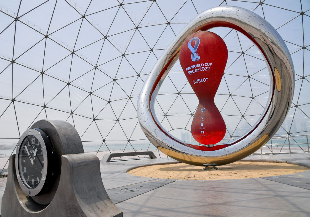 ↑这是2022年8月12日拍摄的2022年卡塔尔世界杯倒计时钟。新华社发(尼库 摄)