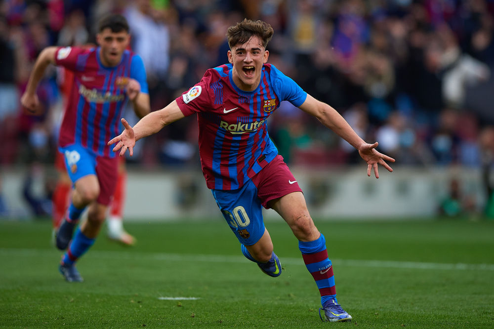 ↑2022年2月6日,加维在西甲比赛中庆祝进球。新华社发(帕布罗·莫拉诺摄)
