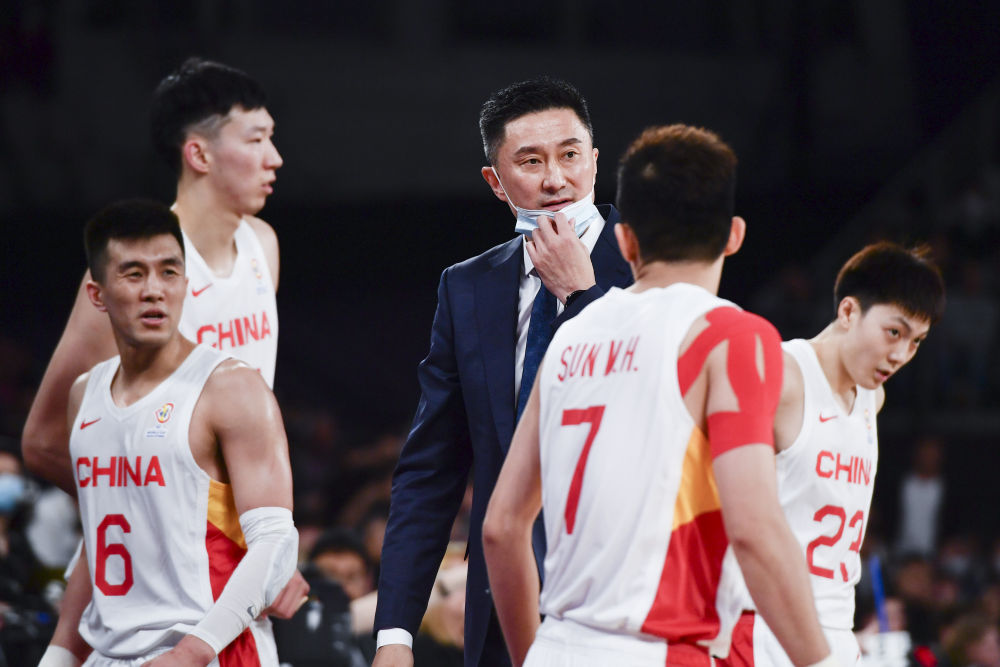 6月30日,杜锋(中)在2023年男篮世界杯预选赛中指导队员。新华社发(白雪 摄)